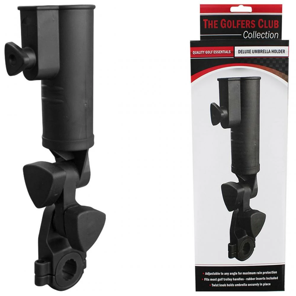 Perfect for holding your brolley in position when its teaming down, fits most carts with a universal fitting that sits the brolley above the bag keeping things nice and dry.