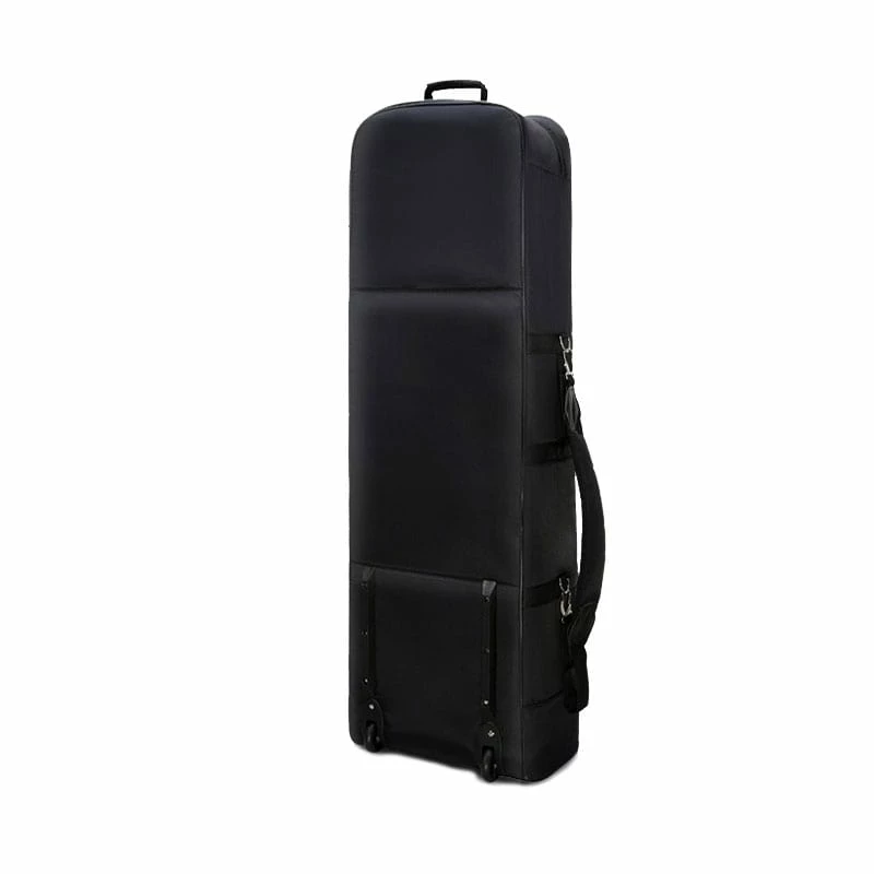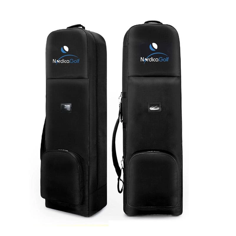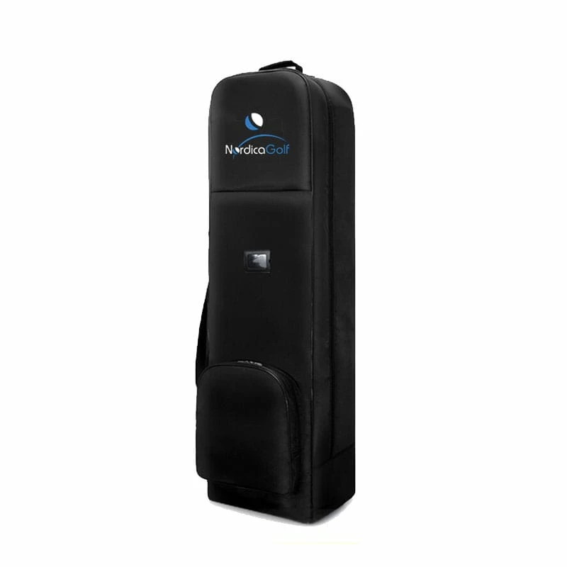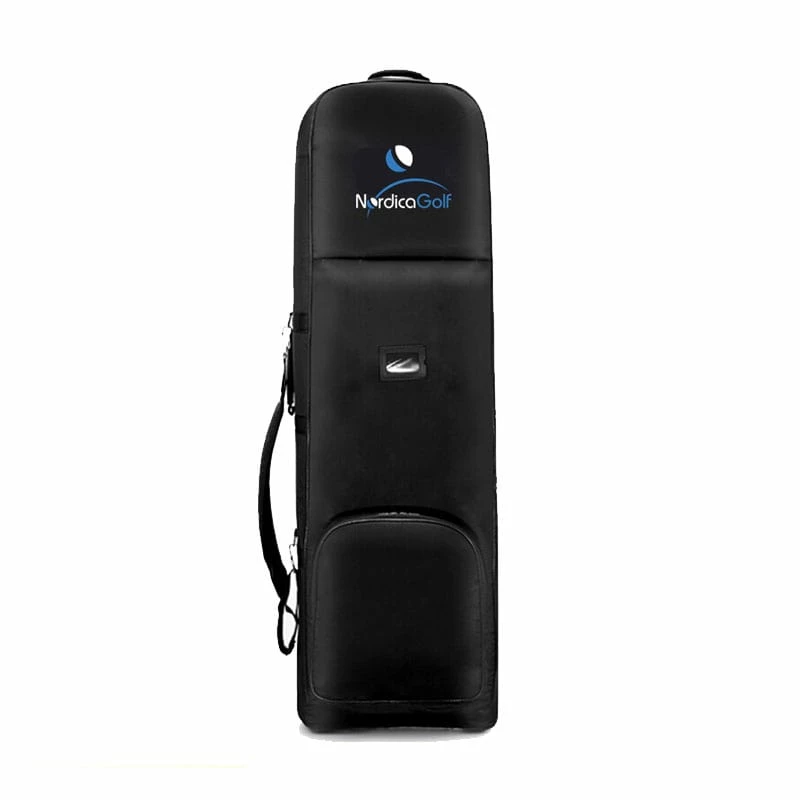 Travel with ease with NordicaGolfs Wheeled Travel Cover Pro. Made of waterproof nylon and is perfectly padded all around to protect your golf gear during travel. Harden PE base for great stability, in-line skate wheels for easy rolling, cotton shoulder strap for easy carrying. Equipped with an extra pocket for shoe storage.